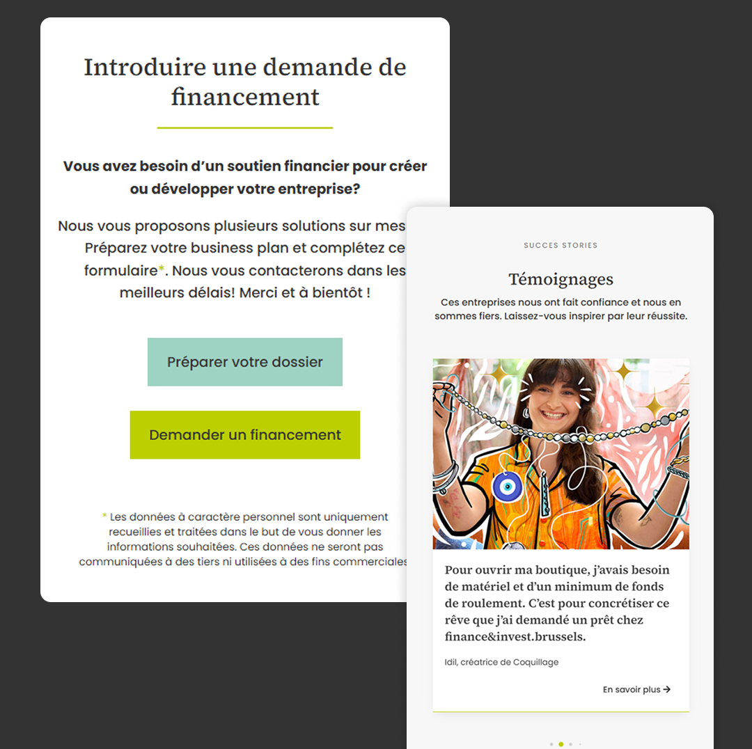 Nous avons donné un coup de neuf au site finance.brussels pour offrir une expérience plus fluide et agréable. Nous avons repensé le parcours utilisateur et placé l’accessibilité au cœur du projet. L’objectif : permettre à chacun, d’accéder facilement aux informations essentielles.